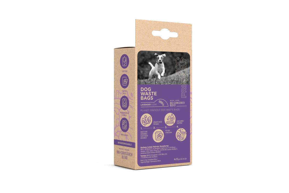 HIPPIE PET Biodegradable waste bags for dogs, 4x15 pcs. lavender scent