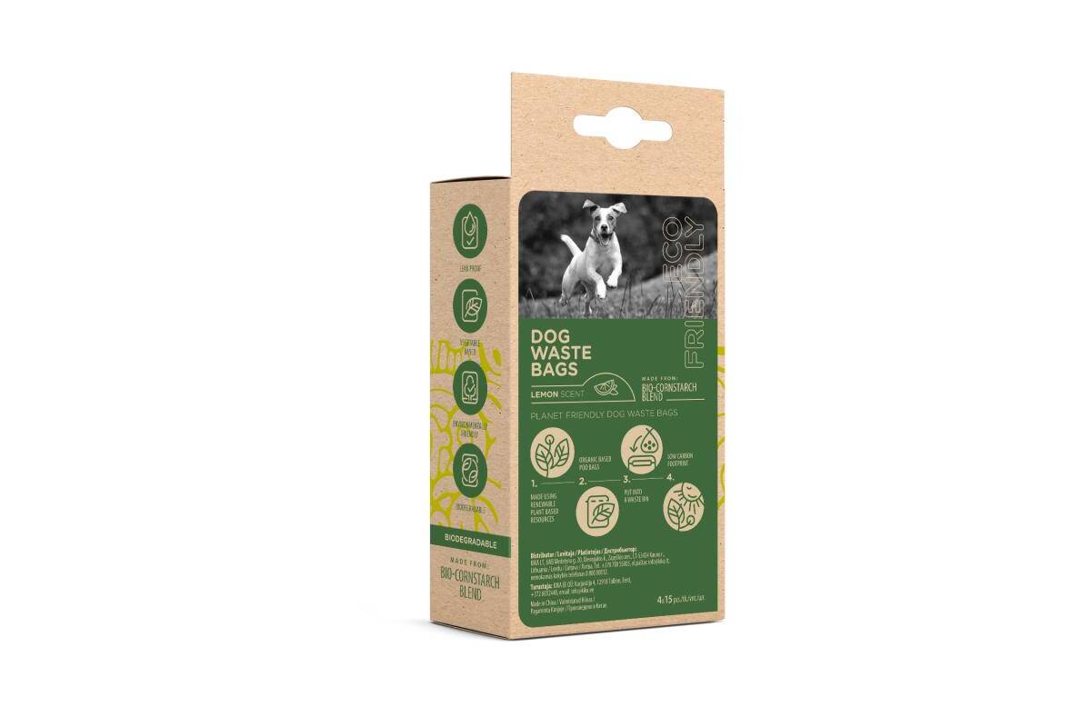 HIPPIE PET Biodegradable waste bags for dogs, 4x15 pcs. lemon scent