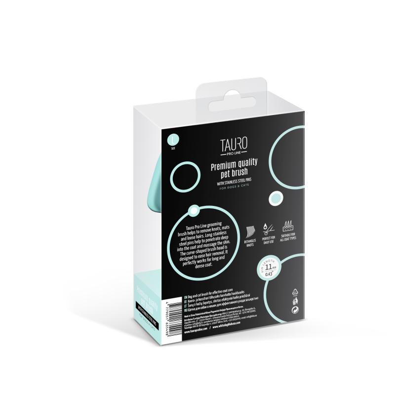 The Tauro Pro Line professional curved brush is designed for efficient grooming of cats and dogs.
