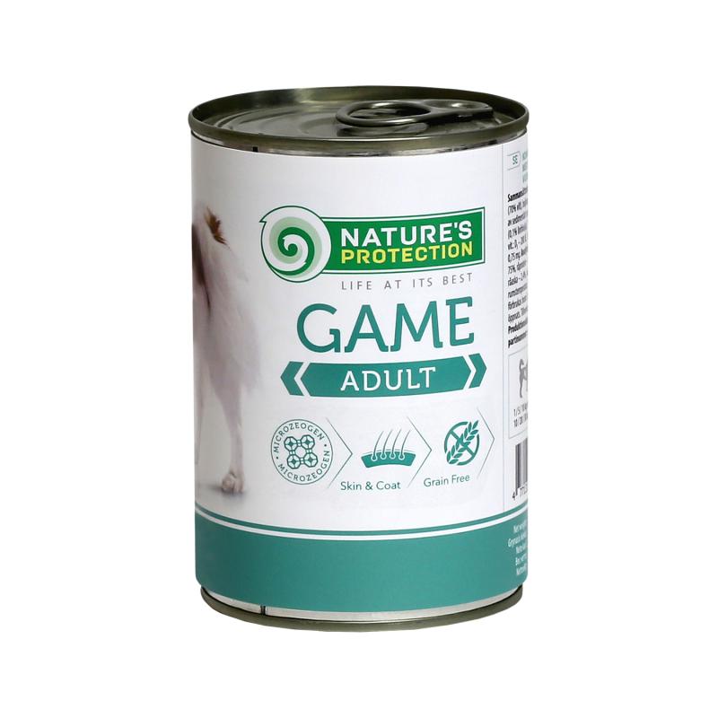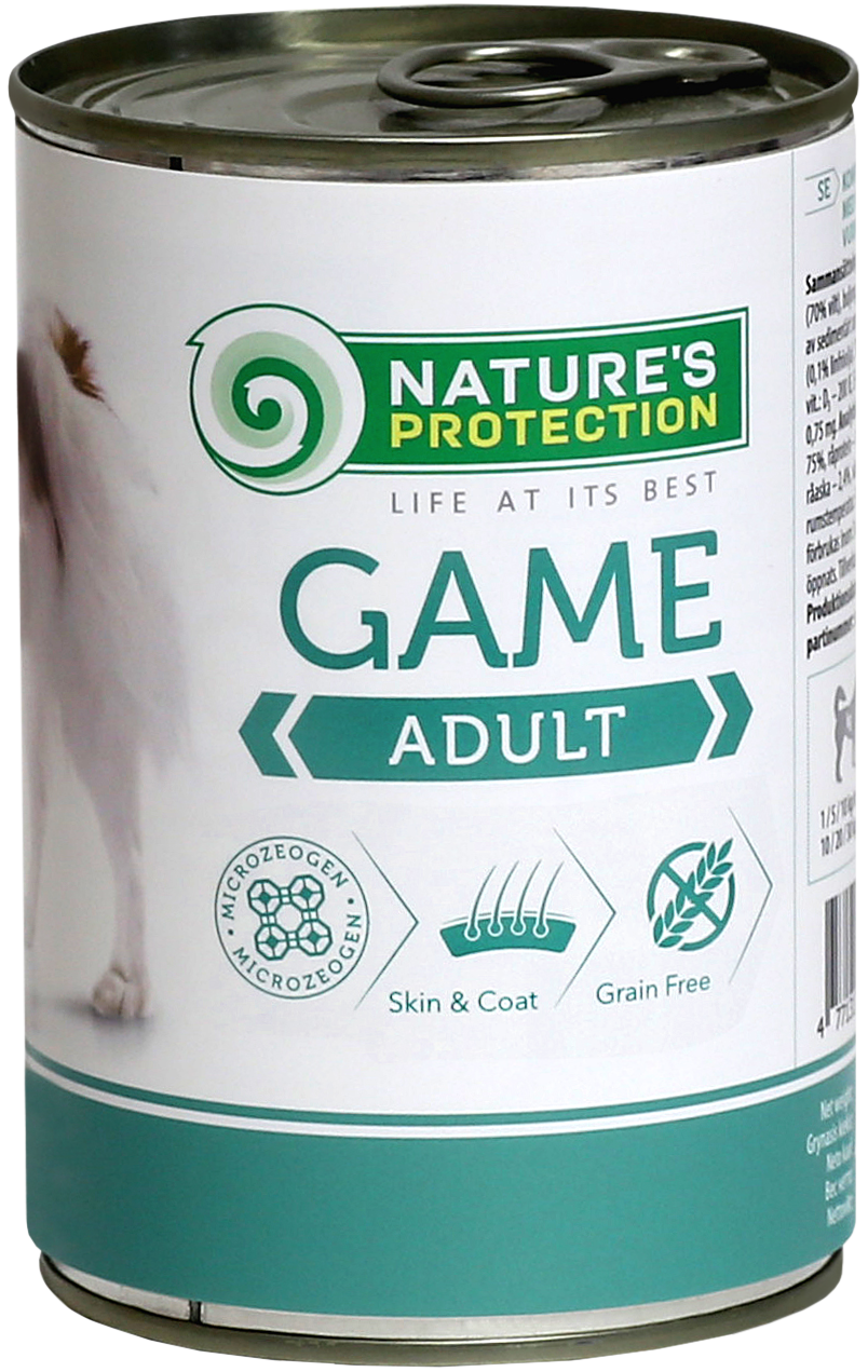 Nature’s Protection canned pet food for adult dogs with game is a premium, super-nutritious meal specially crafted to meet the dietary needs of adult dogs. The product features high-quality game meat as its primary protein source, providing excellent nutrition and taste. Gently cooked to preserve the natural aroma and nutrients, this canned food ensures your dog receives a flavorful, highly digestible meal that promotes optimal health. It serves as an ideal complement to Nature’s Protection dry dog food, enhancing the overall nutritional profile of your pet’s diet.