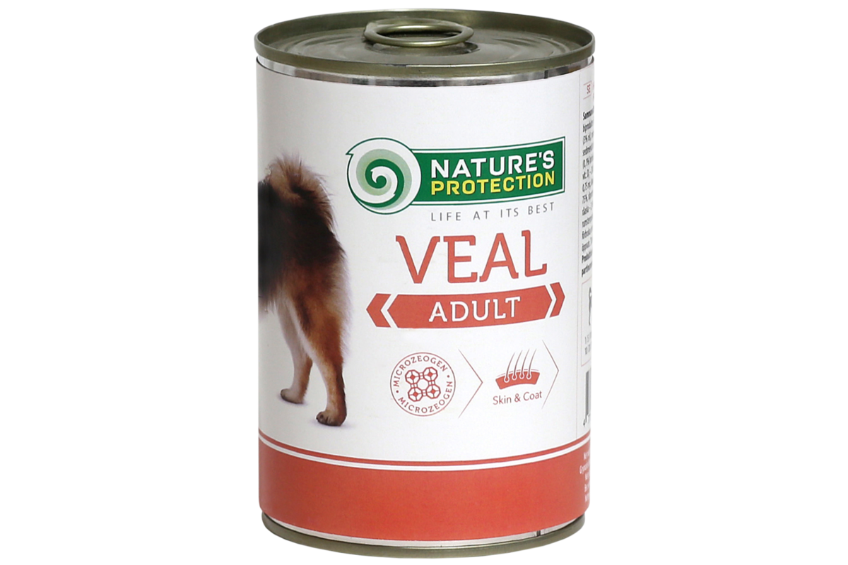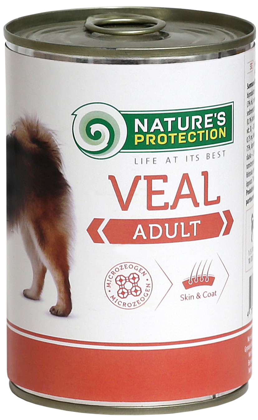 Nature's Protection Canned Pet Food for Adult Dogs with Veal is crafted to provide premium nutrition tailored to the needs of adult dogs. Featuring veal as the primary source of high-quality protein, this wet food delivers essential nutrients in a delicious, gently cooked recipe. Designed to retain natural taste, aroma, and nutritional value, it offers an ideal complement to Nature’s Protection dry food diets.