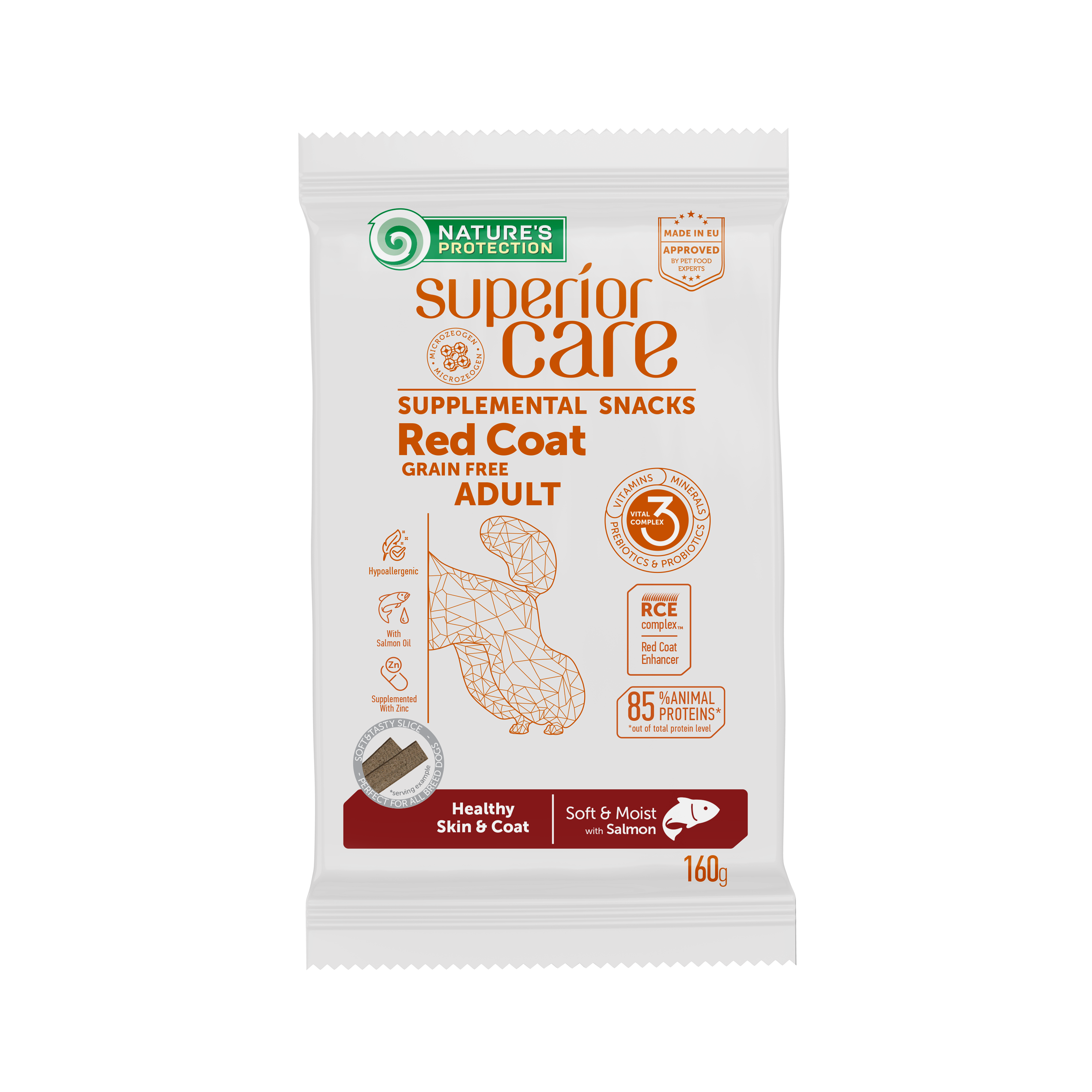 NATURE'S PROTECTION SUPERIOR CARE complementary grain free feed – snacks for adult dogs of all breeds with red coat with salmon 160 g