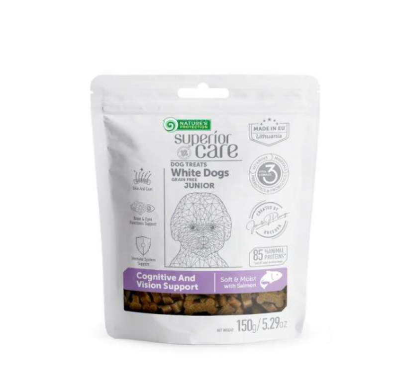 - NATURE'S PROTECTION SUPERIOR CARE complementary grain free feed - snacks for sensitive care with salmon for junior all breed dogs with white coat 150 g