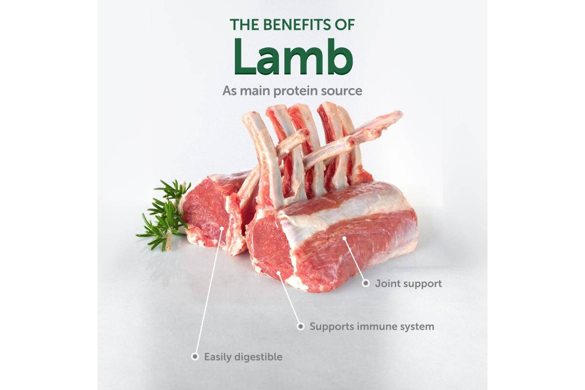 - Lamb as the main protein source: hypoallergenic, easily digestible.