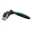 TAURO PRO LINE pet grooming deshedding undercoat rake with rotating double stainless-steel blades (45 mm x 40 mm), 0.8 mm and 0.6 mm tooth spacing, black with greenish handle S