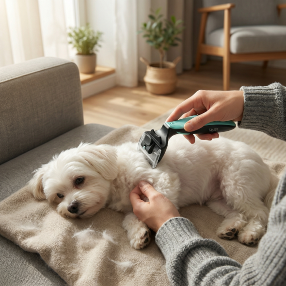 TAURO pet grooming undercoat comb is designed for regular coat care, helping effectively remove excess coat and dead undercoat. The tool is intended for use on a completely dry and tangle-free coat, ensuring an even and controlled brushing process.