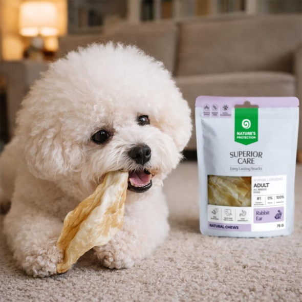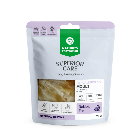 Nature’s Protection Superior Care treats for adult dogs of all breeds, rabbit ears, skinless – more than just a snack. It is a natural, single-ingredient treat for daily pampering and additional benefits – from dental hygiene to keeping your dog busy and maintaining good health.
