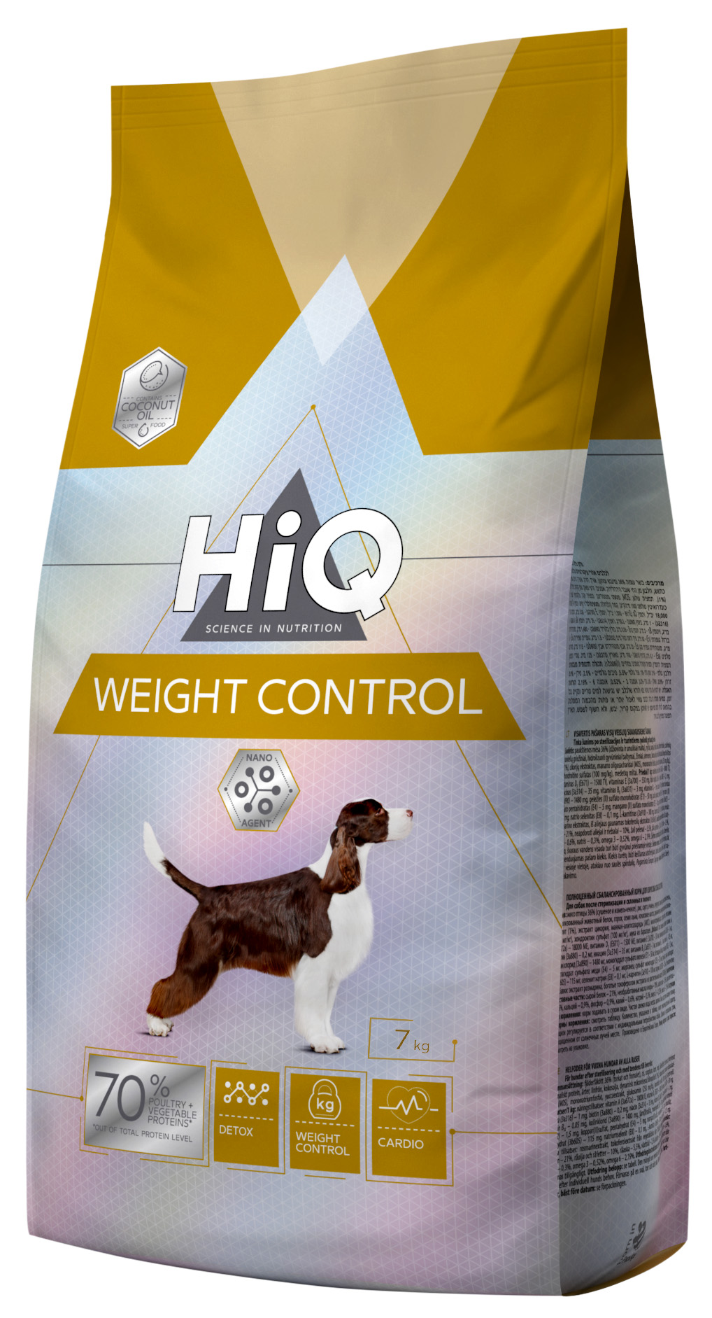 HiQ Weight Control - Super Premium (premium) quality dry food for all breeds of adult dogs after sterilization/castration and prone to overweight. This feed is intended for the effective detoxification of the body, the uptake of substances and excellent digestion. It also helps to promote material circulation processes. The composition of the dry food is enriched with unique ingredients, which are designed to support the smooth functioning of the heart and improve the functioning of the circulatory system. Contains animal proteins that provide the pet's body with a balanced amount of amino acids for a healthy and longer life.