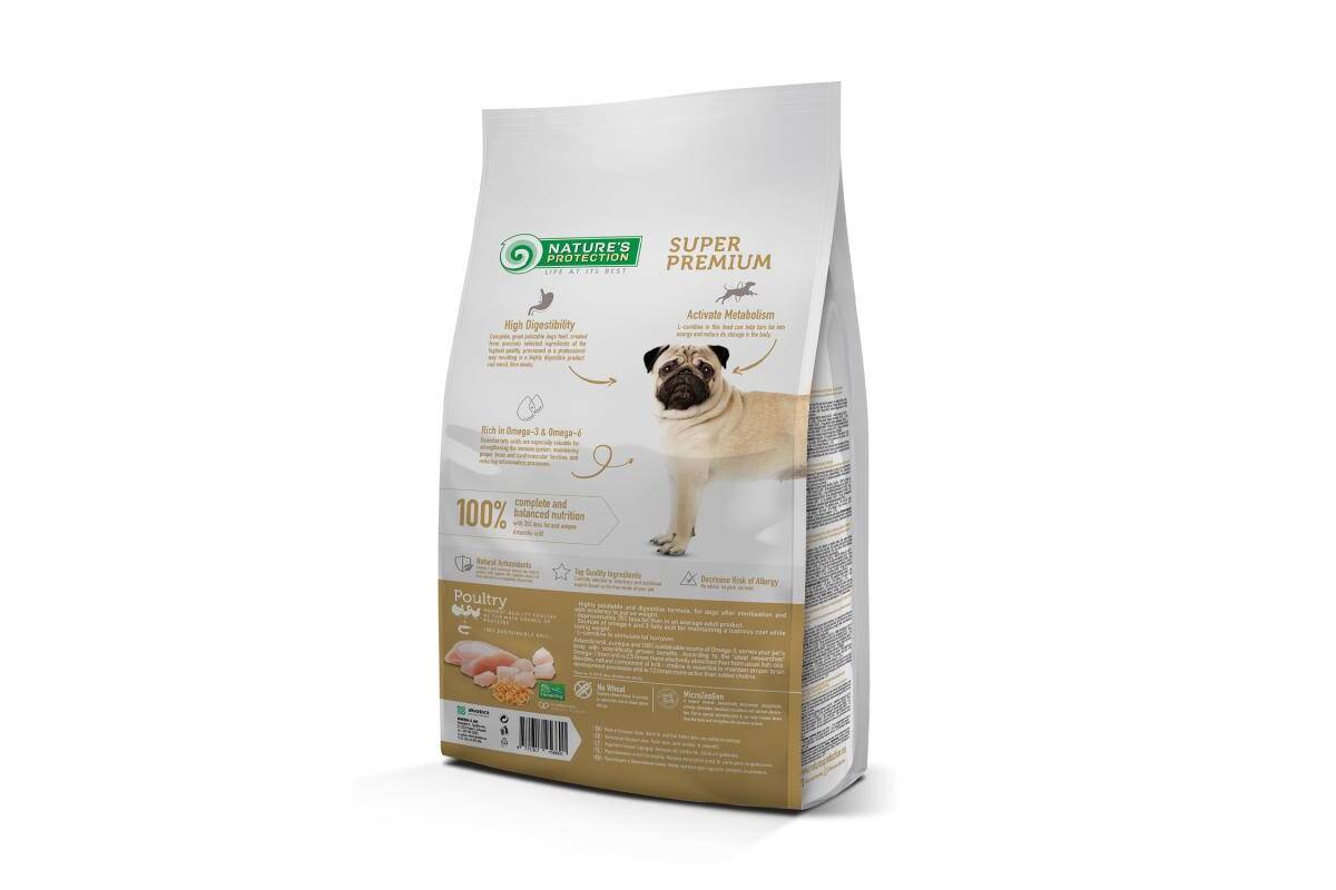 NATURE'S PROTECTION dry food for adult dogs of all breeds for weight control after sterilization, with poultry and krill 4 kg