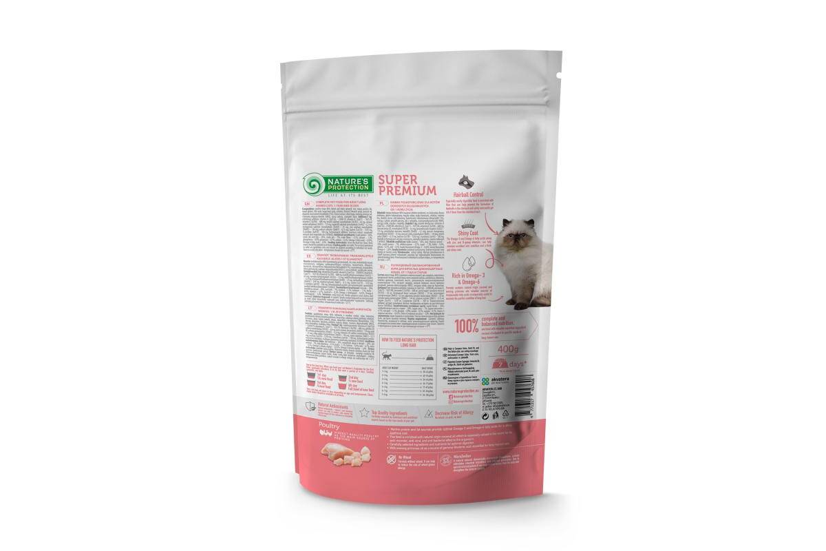 NATURE'S PROTECTION dry food for adult long haired cats with poultry 400 g