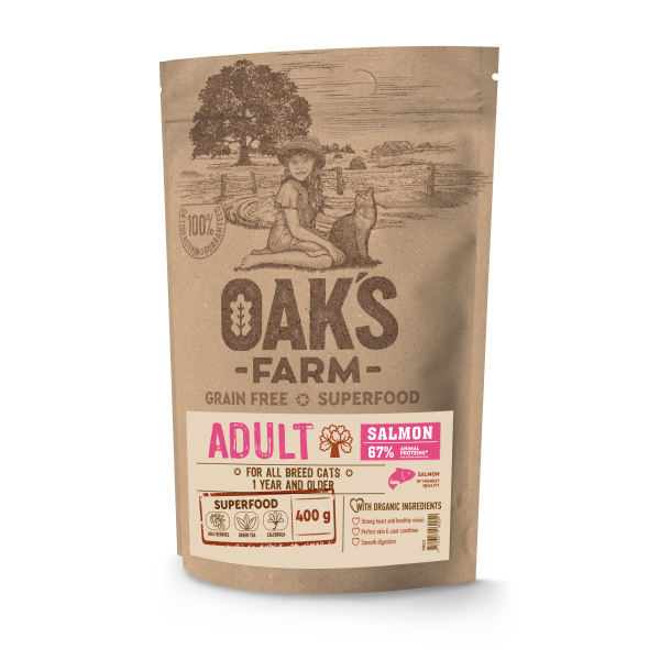 - OAK'S FARM dry grain free food for adult cats with salmon 400 g