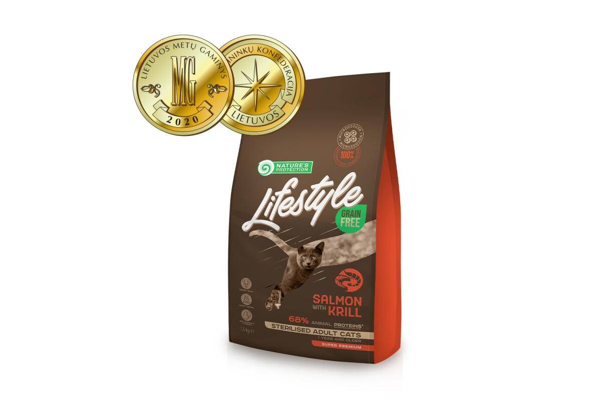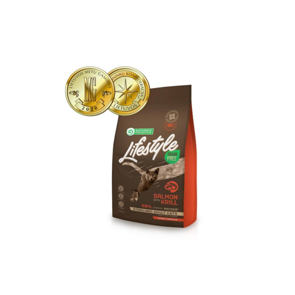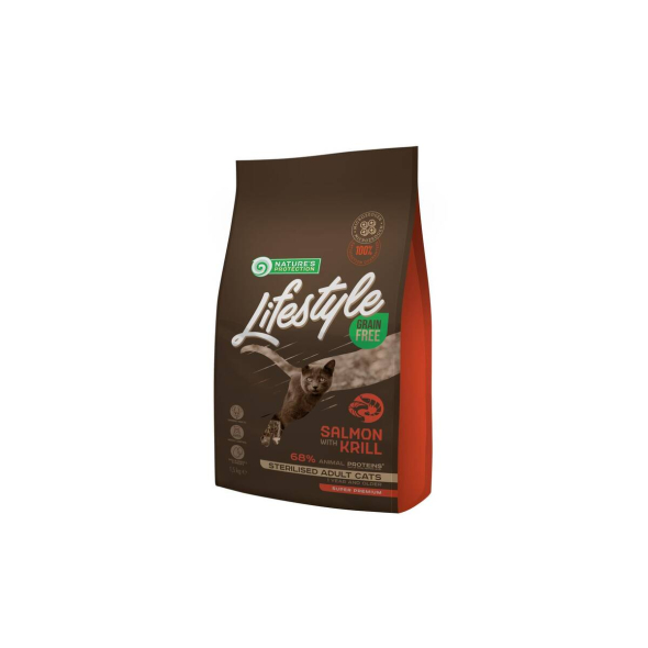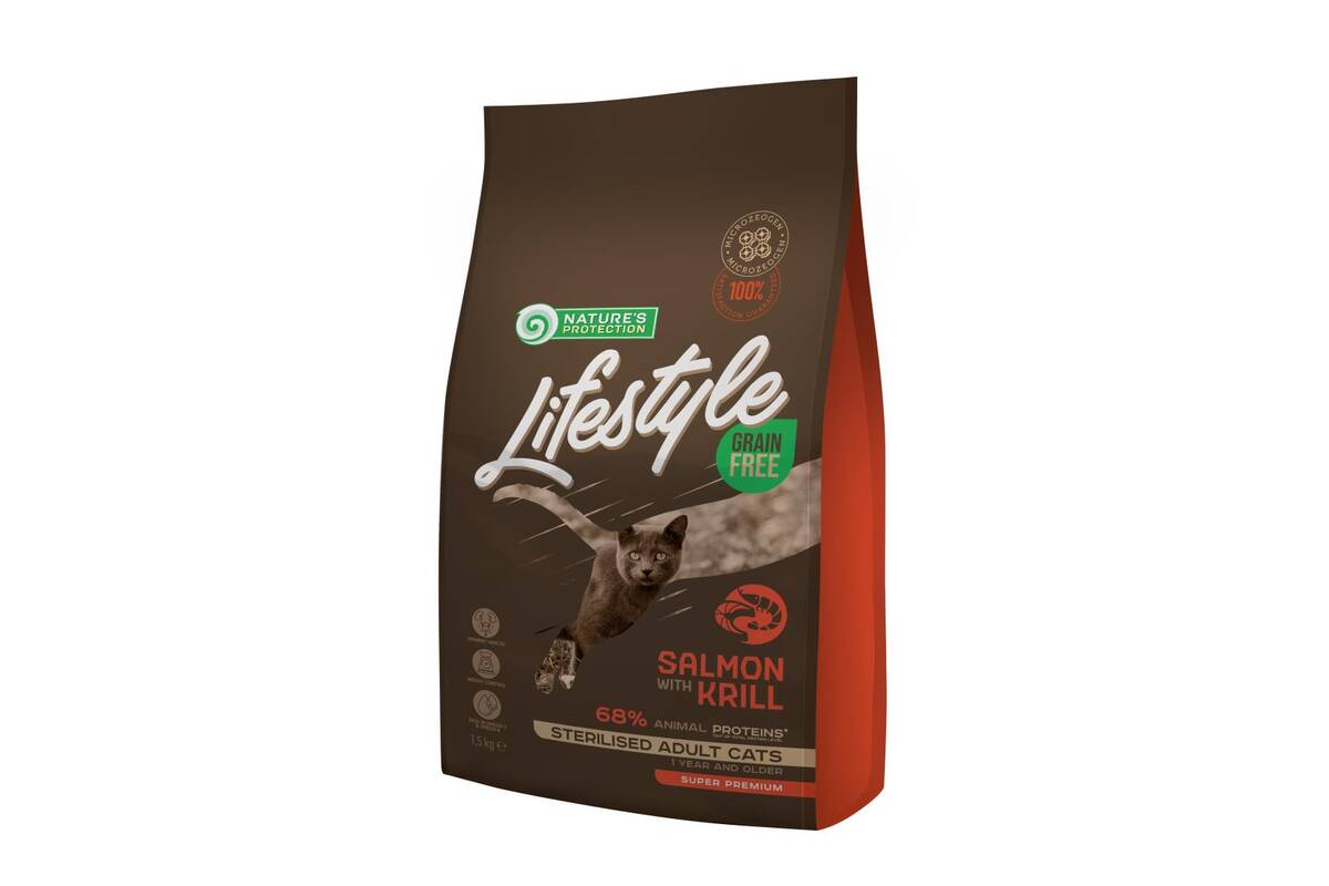 NATURE'S PROTECTION LIFESTYLE dry grain free food for adult cats with salmon and krill after sterilisation 1.5 kg