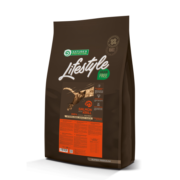 NATURE'S PROTECTION LIFESTYLE dry grain free food for adult cats with salmon and krill after sterilisation 7 kg