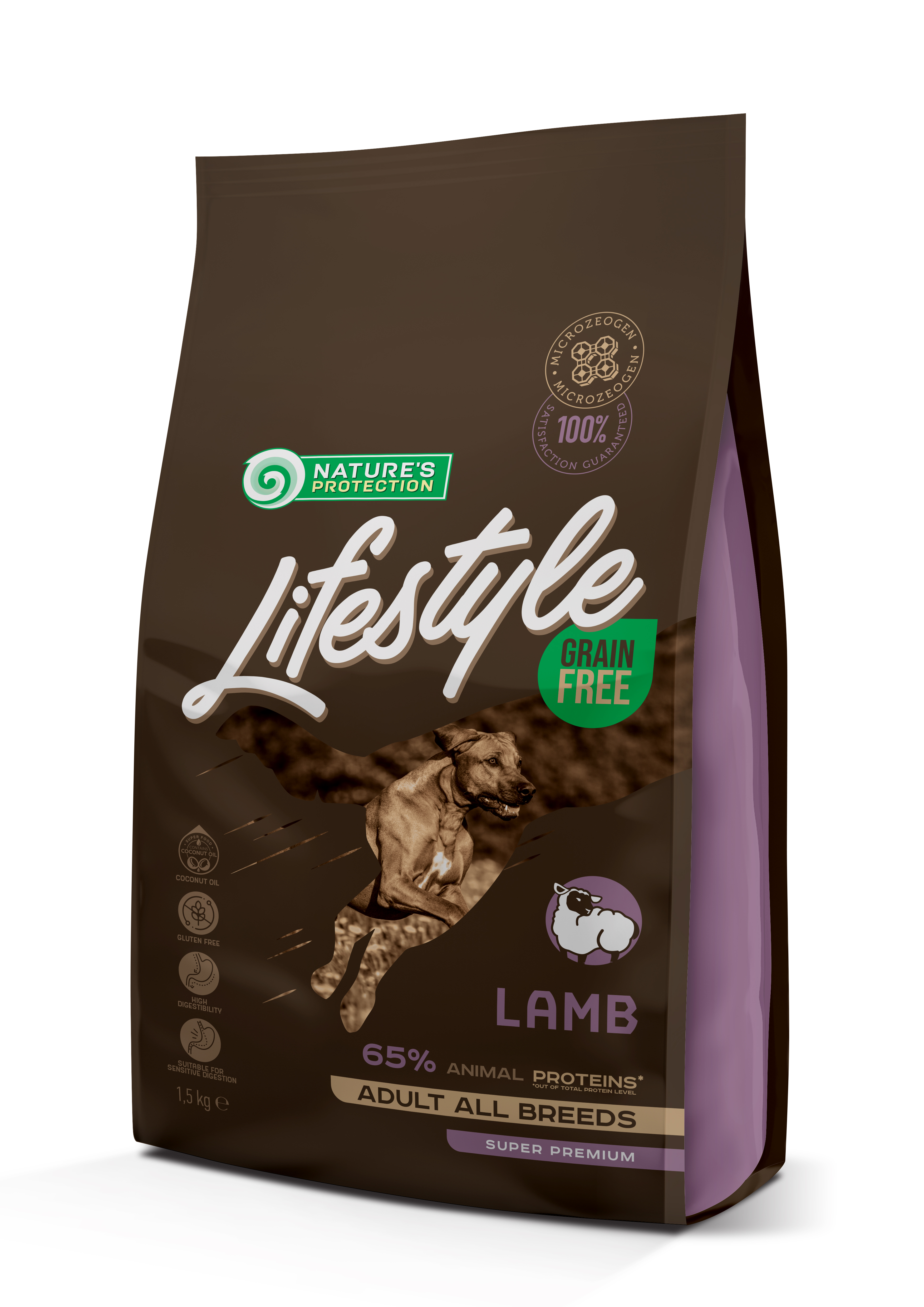 Nature's Protection Lifestyle Adult All Breeds with Lamb is known for its well-balanced composition and raw materials, which provide a healthy diet and easy digestibility for adult dogs of all breeds. The main source of protein in this complete dry dog food is lamb. Lamb is a highly digestible and palatable protein source that provides essential amino acids, vitamins, and minerals to help maintain the pet's overall health. The complete and balanced composition of this dry dog food is enriched with clinoptilolite of volcanic origin from nature – MicroZeoGen. It helps to remove toxins from the pet's body and when it is detoxified the efficient nutrients, vitamins, and minerals easily absorb into the body. The composition also contains Omega-3 and Omega-6 fatty acids and coconut oil, that are essential for promoting healthy skin and coat, supporting immune system function, and aiding in digestion. The composition does not contain ingredients of grain origin, so it can help to reduce the risk of allergies for dogs with sensitive digestive systems. This complete and balanced formula provides adult dogs of all breeds with all the necessary nutrients to help maintain good health, energy, and vitality.