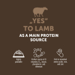 Composition: lamb meat 38 % (dried and finely ground), potato flakes, lamb tallow, peas, sugar beet pulp, chicken liver hydrolysate, linseed, brewer’s yeast, coconut oil (1 %), dynamic micronized clinoptilolite (1 %), cellulose, egg powder, fructooligosaccharides (FOS), green tea, cranberry dried, marigold dried.
