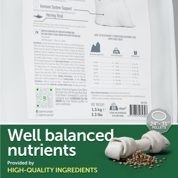 NATURE'S PROTECTION SUPERIOR CARE dry grain free pet food with herring for adult dogs of small breeds with white coat 10kg