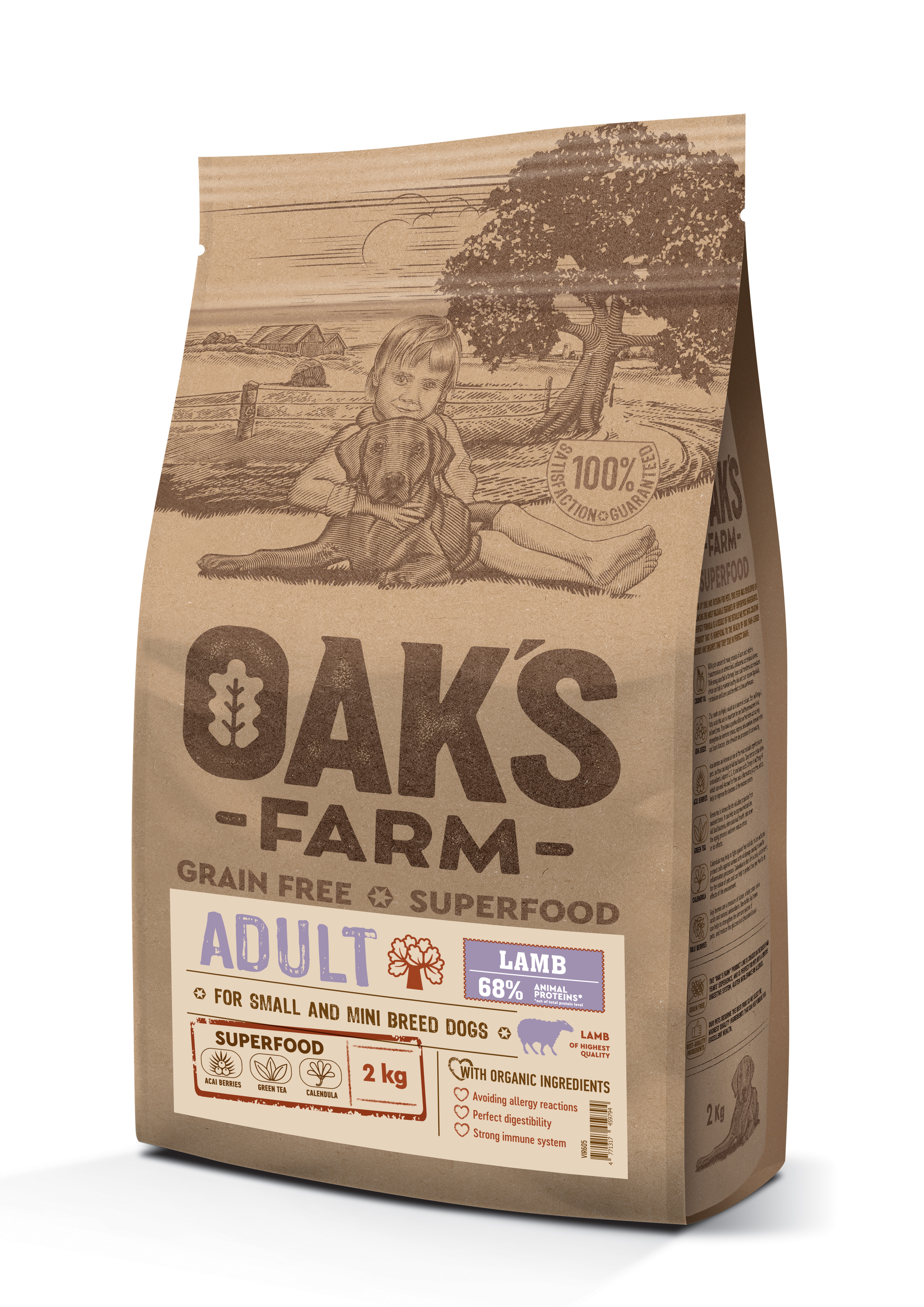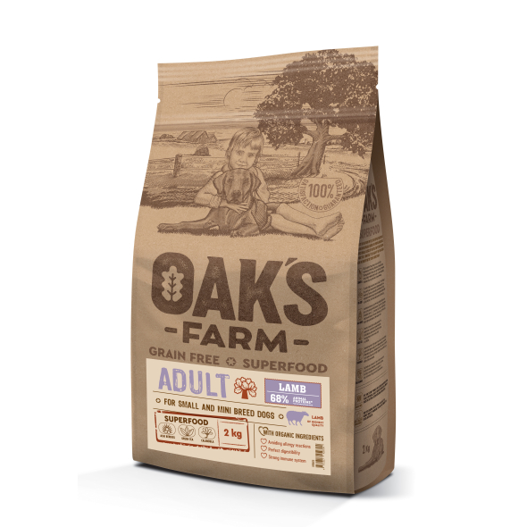 - OAK'S FARM dry grain free food for adult, small and mini breed dogs with lamb 2 kg