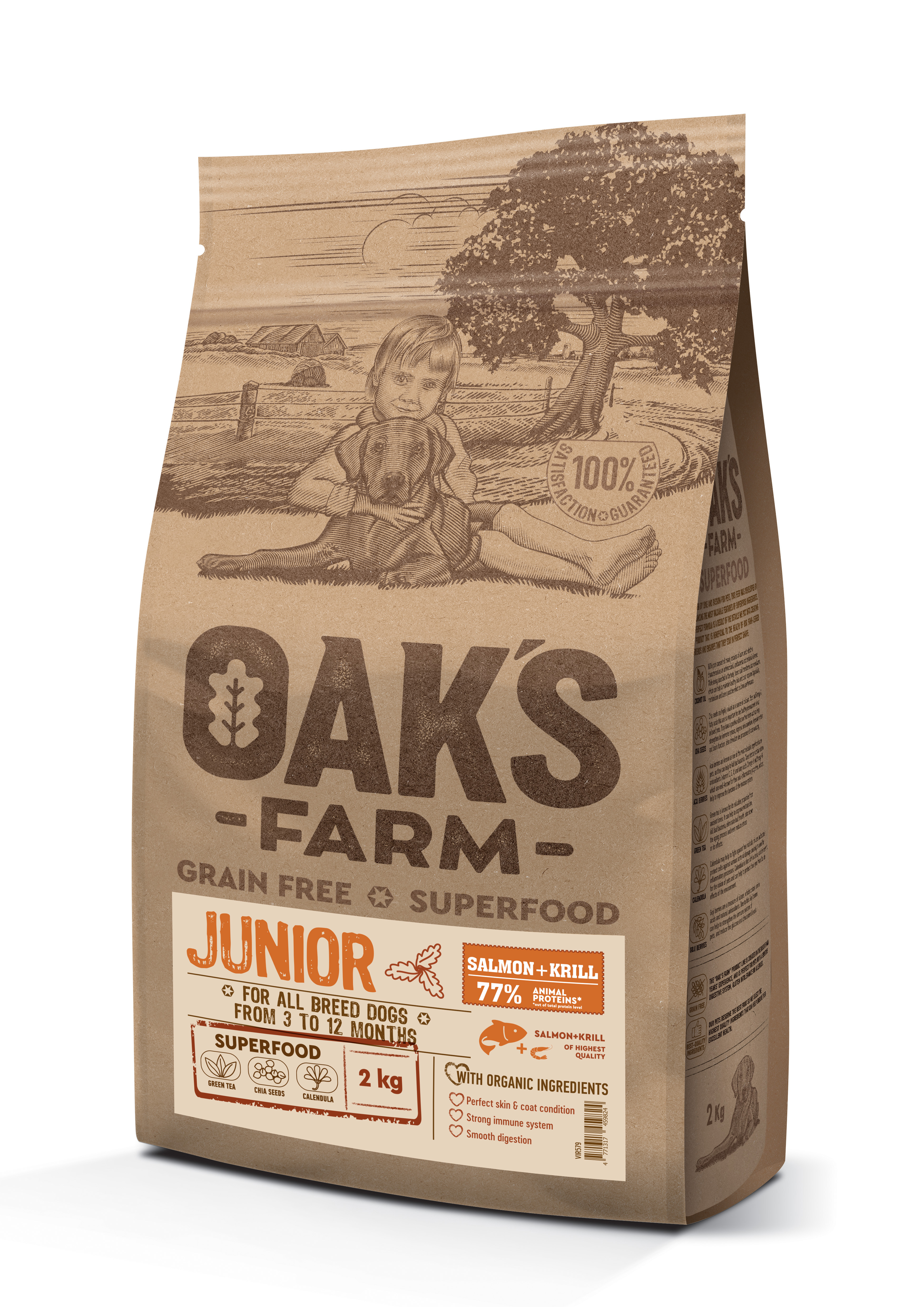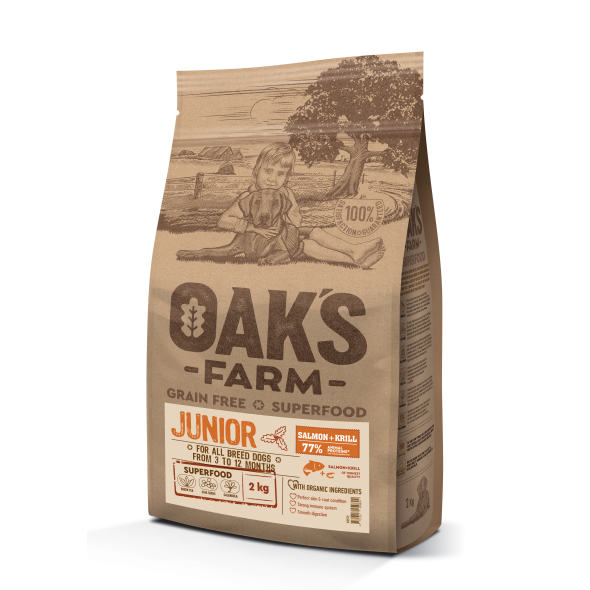 - OAK'S FARM dry grain free food for junior dogs of all breeds with salmon and krill 2 kg