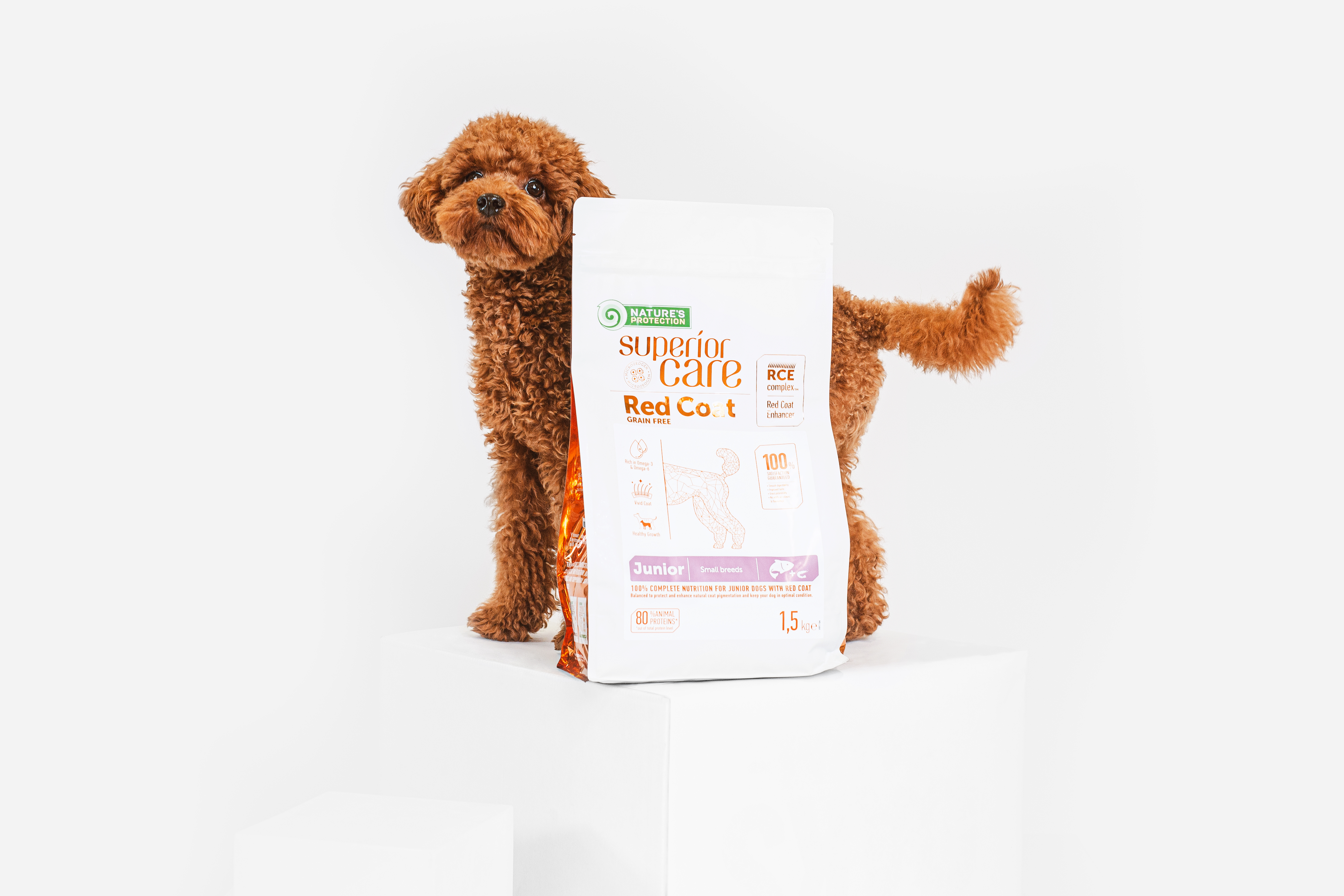 NATURE'S PROTECTION SUPERIOR CARE dry grain free food for junior dogs of small breeds with red coat, with salmon 1.5 kg