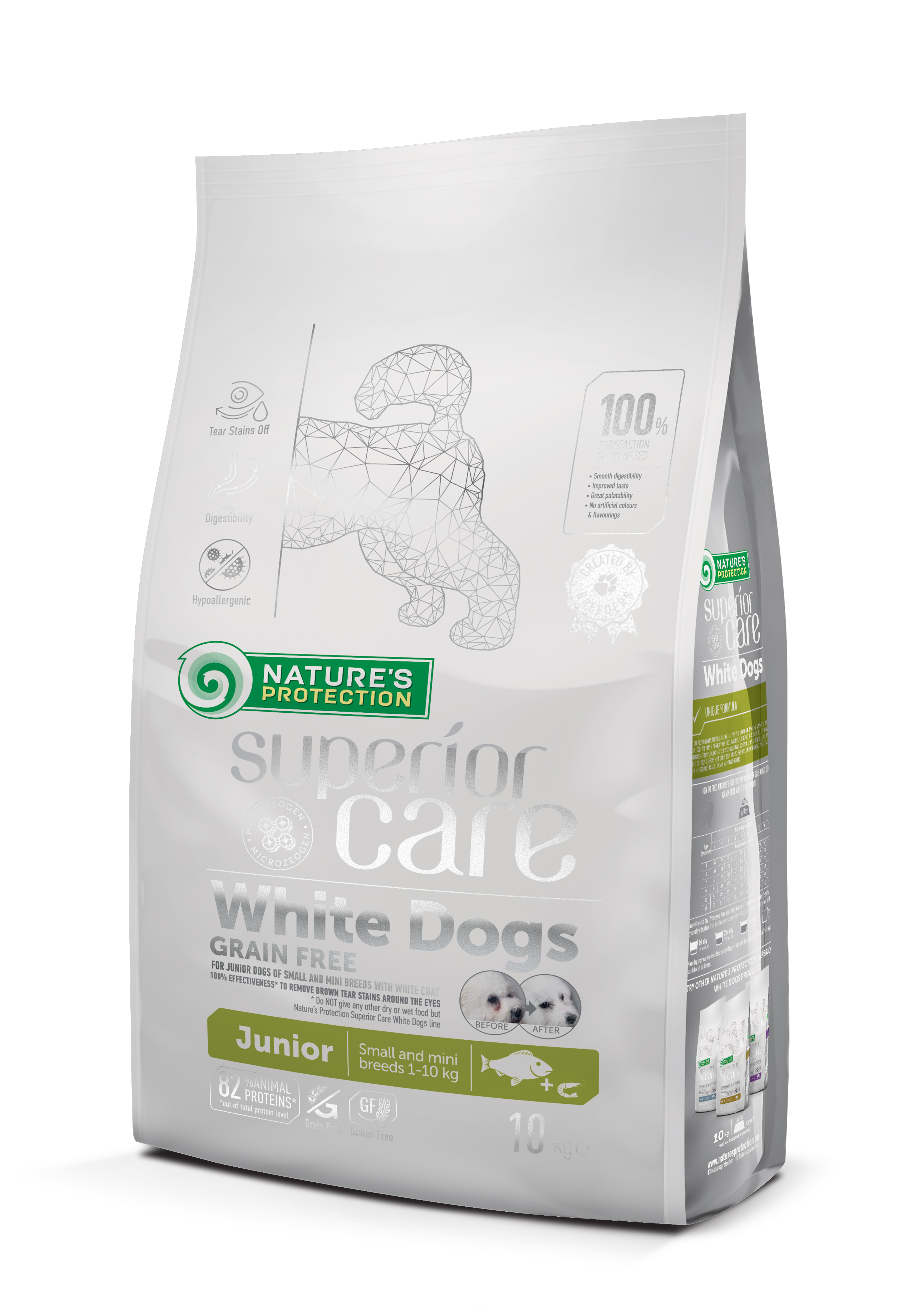 NATURE'S PROTECTION SUPERIOR CARE dry grain free food for junior small and mini breed dogs with white coat, with white fish 10 kg