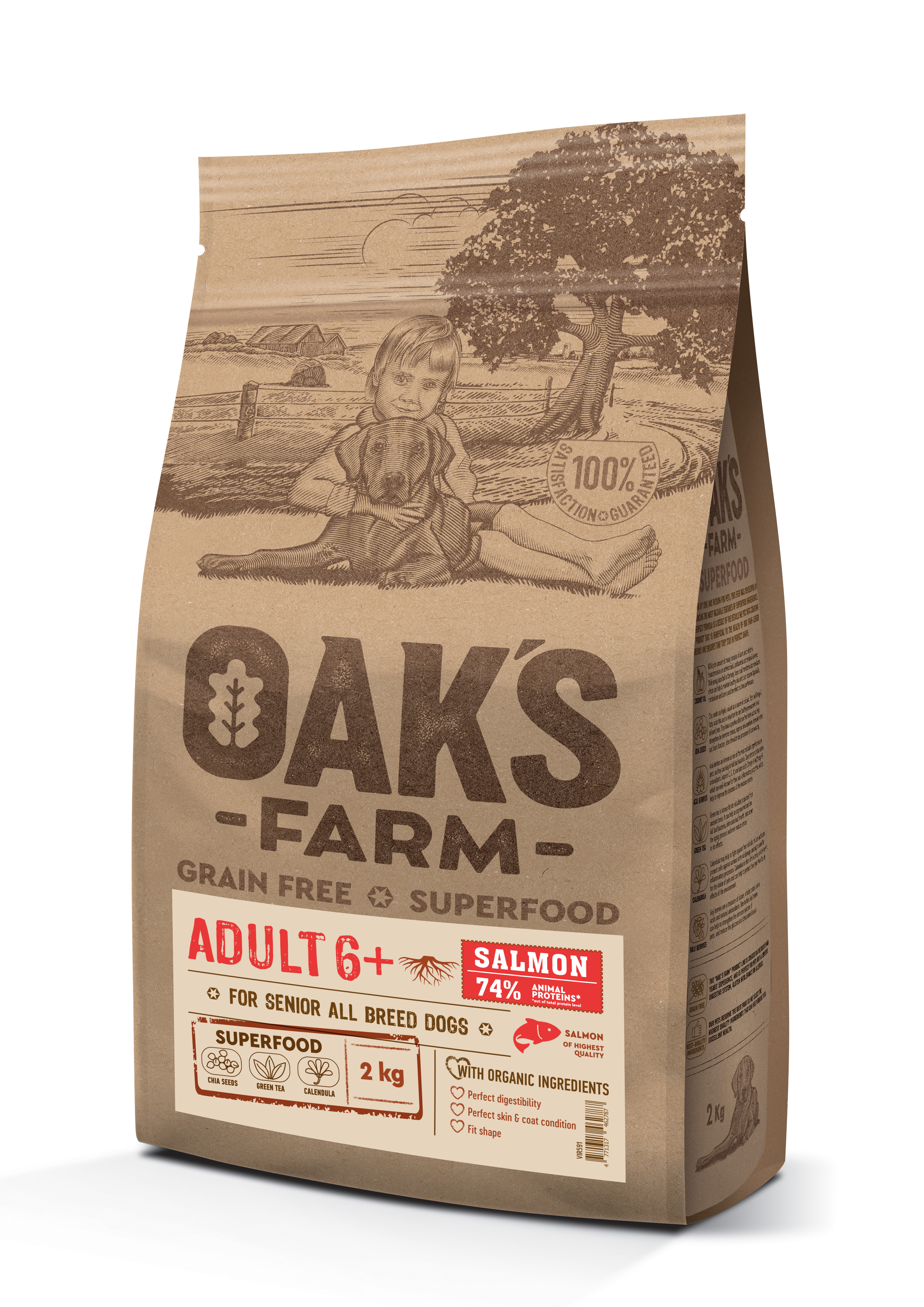 OAK'S FARM dry grain free food for senior dogs of all breeds with salmon 2 kg