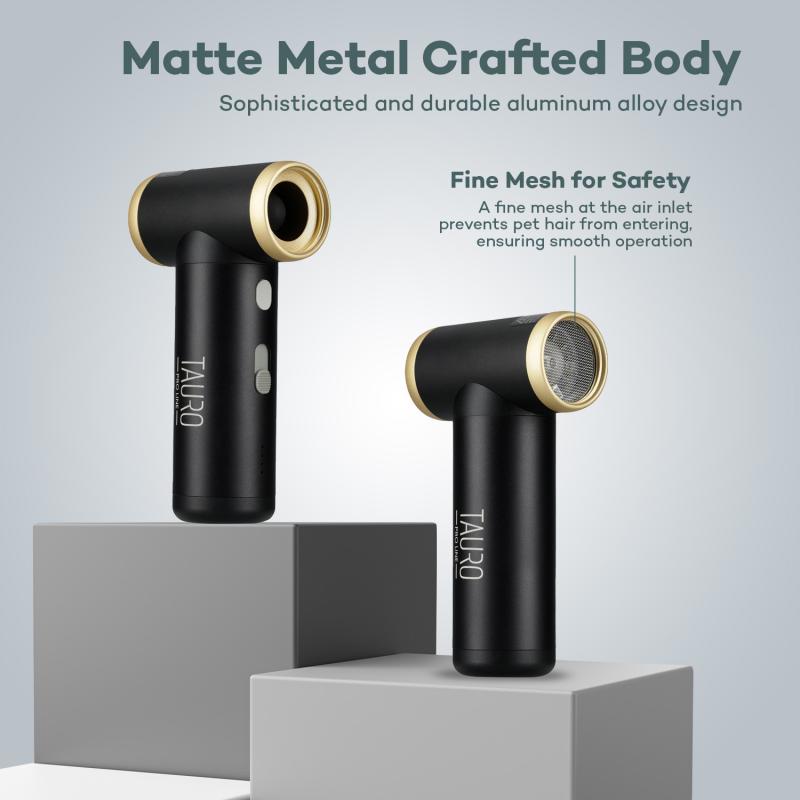 Beyond grooming, this dryer is a multi-functional tool that can also quickly blow out dust from hard-to-reach areas, clean equipment, or even dry small household items. Its cordless and lightweight design ensures ease of use and portability, allowing you to groom your pet or handle other tasks effortlessly, whether at home or on the go. Built with high-quality materials, the mini dryer delivers durability and reliability, supporting countless grooming sessions. Whether you're a pet owner or a professional groomer, the Tauro Pro Line Professional Pet Grooming mini dryer is the perfect combination of functionality, safety, and performance, ensuring a stress-free experience for you and your pet.