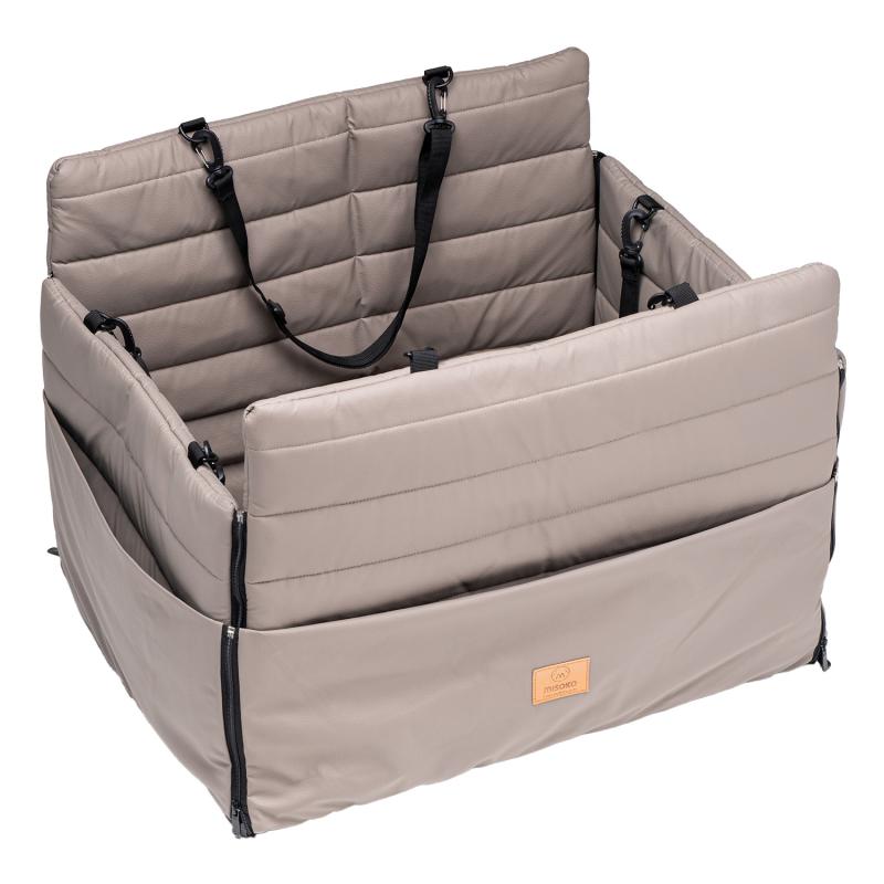 MISOKO pet transport bag with seat protection, open, leather, grey 65x50x38 cm
