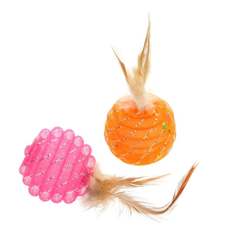 HIPPIE PET toy for cat, balls with a feather, 5 cm, 2 pcs. pink and orange