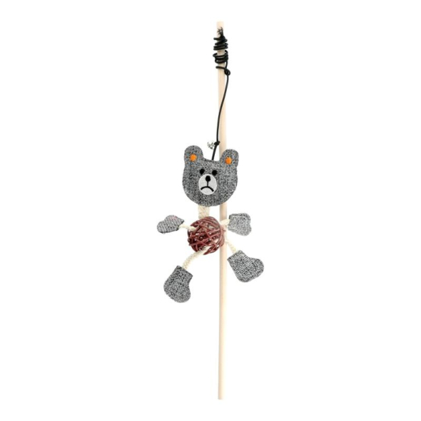 HIPPIE PET toy for cat fishing rod, with a teddy bear, 40 cm gray