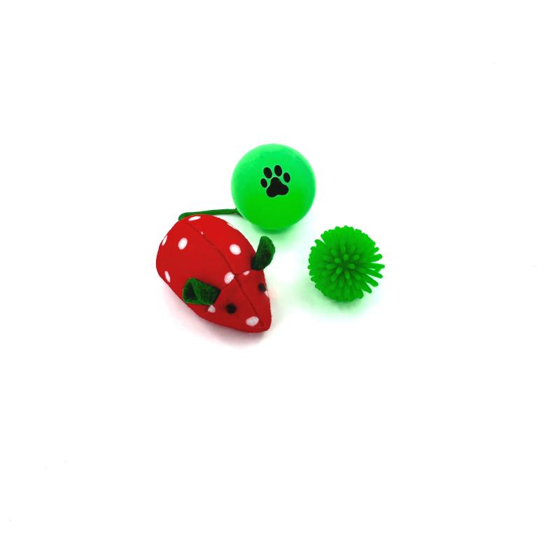 HIPPIE PET toy for cat, mouse with balls, 3 pcs. red/green