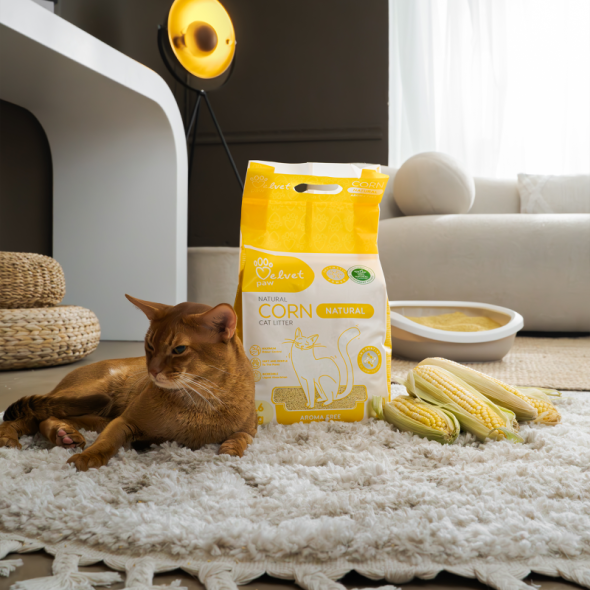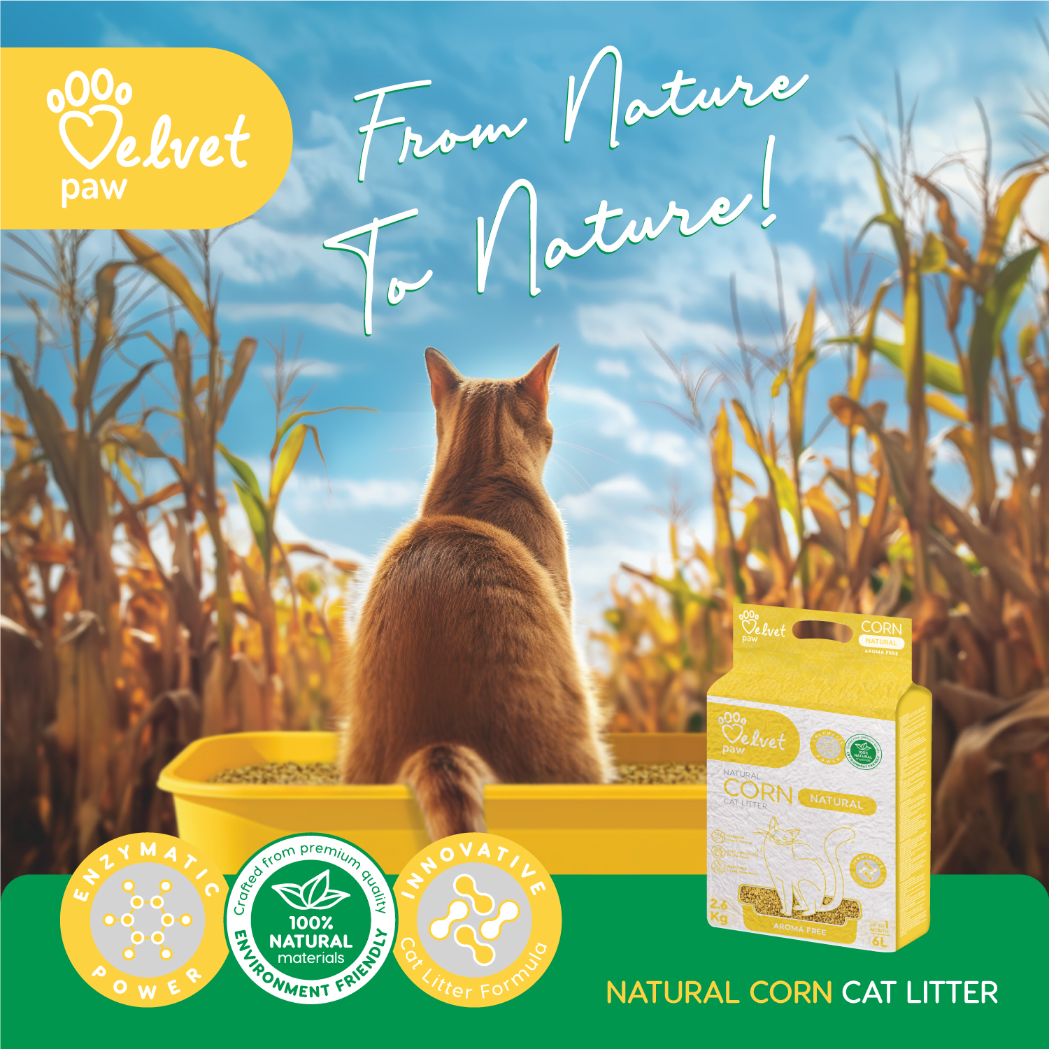 VELVET PAW natural unscented corn litter is a natural, safe, and eco-friendly solution for your cat’s litter box: