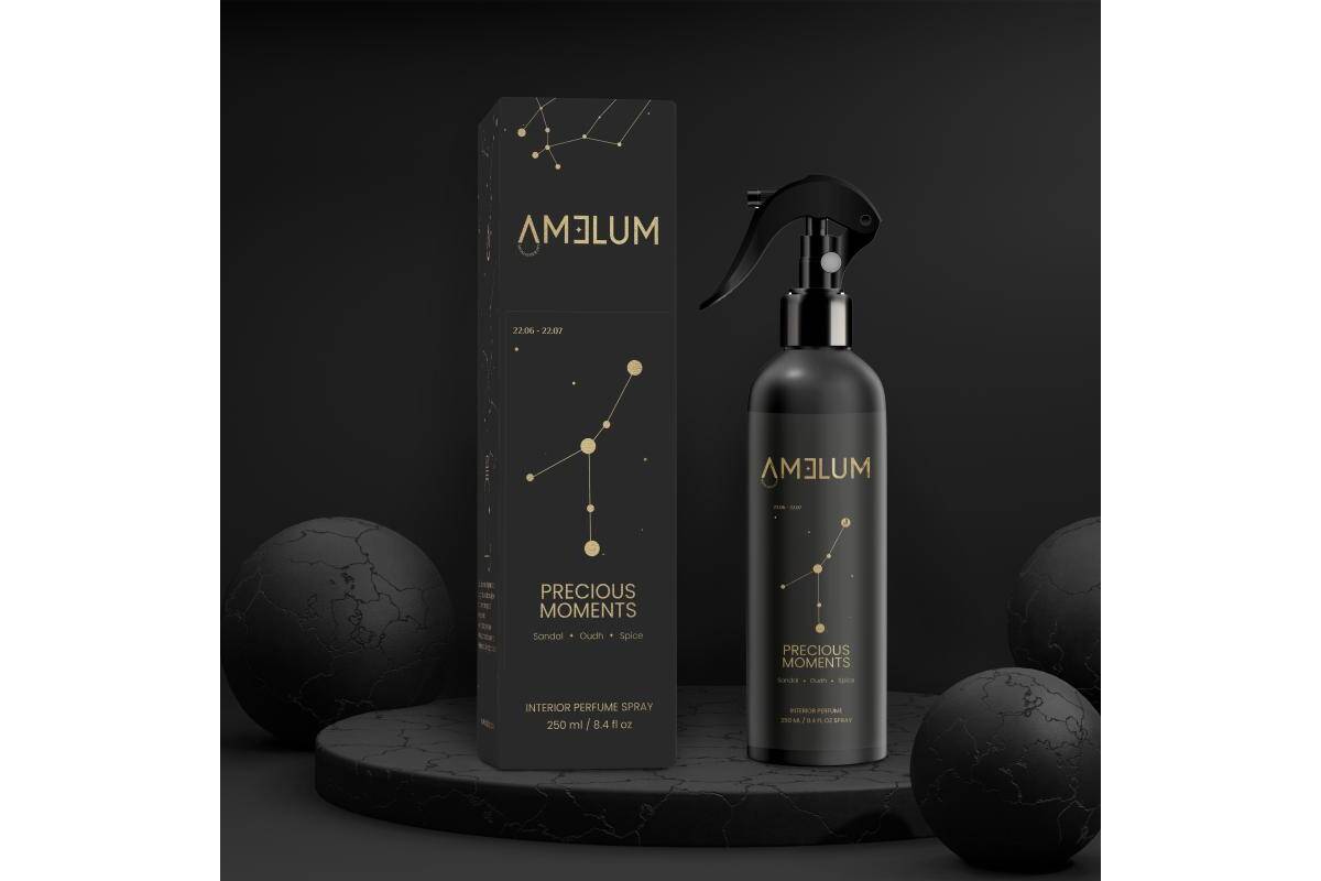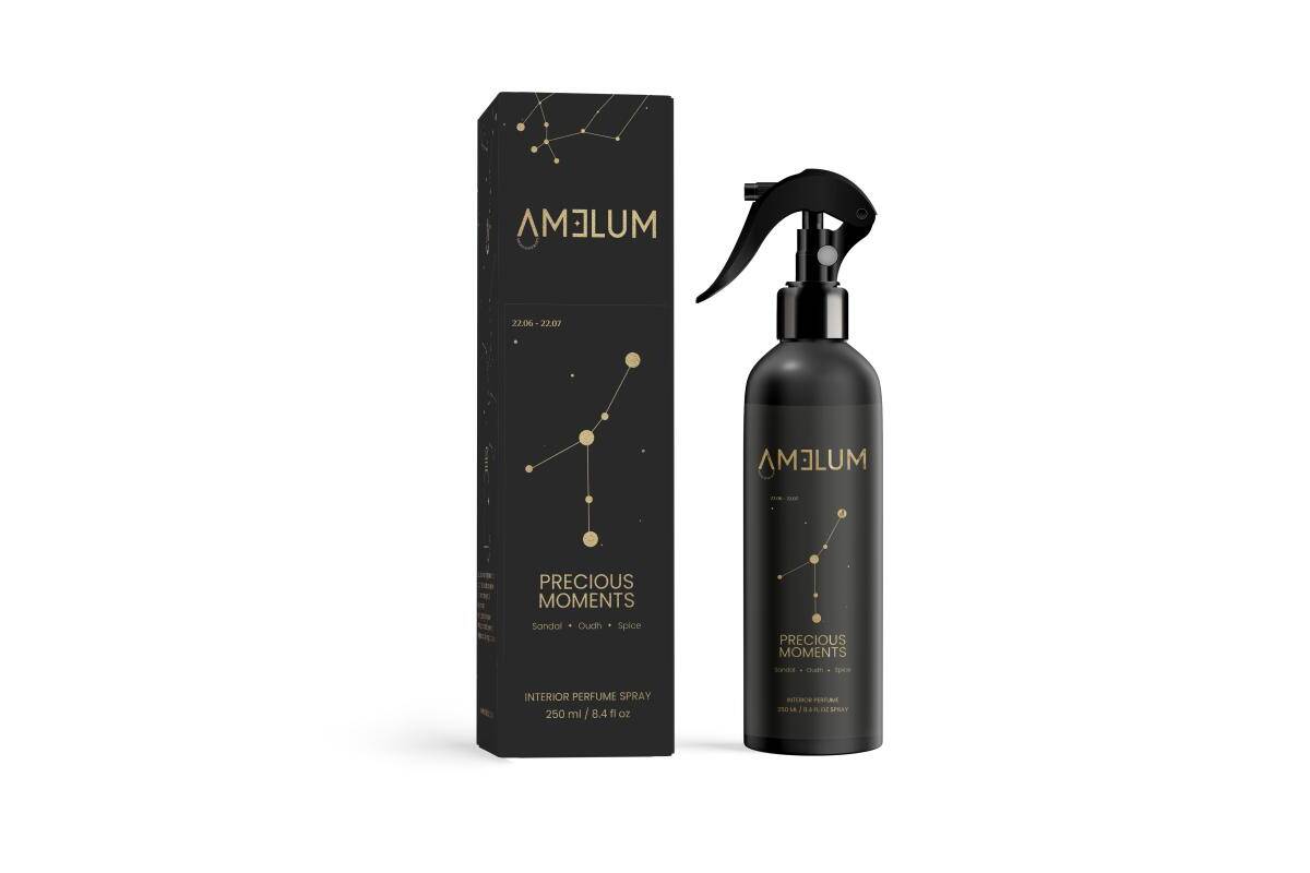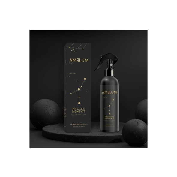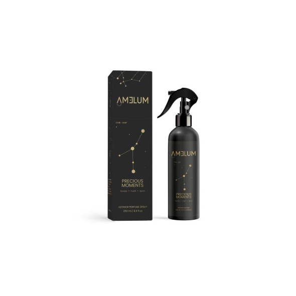 AMELUM Precious Moments interior perfume combines gilded notes of fresh sandal and spicy oudh to create a warm scent experience inspired by the memoriable moments of your life.