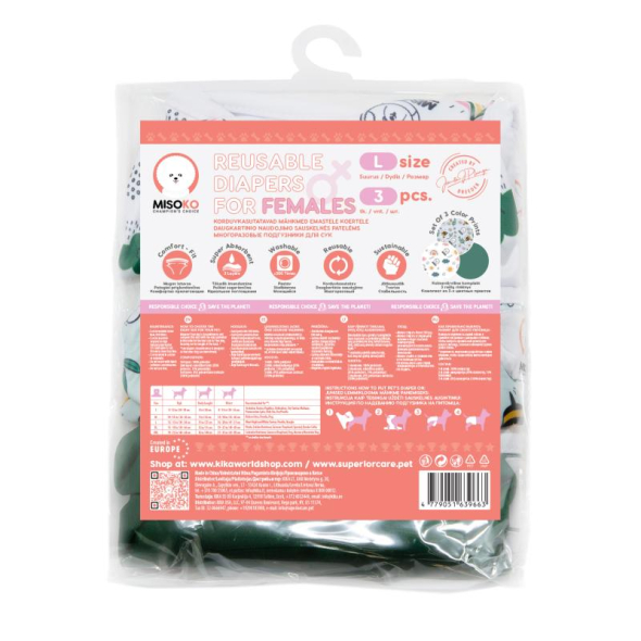 MISOKO reusable diapers set for female dogs, Meadow size L