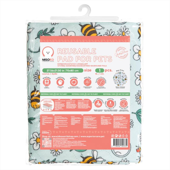 MISOKO reusable pad for pets, 1 pcs. with bees, blue colour, 70x80 cm, 1 pcs.