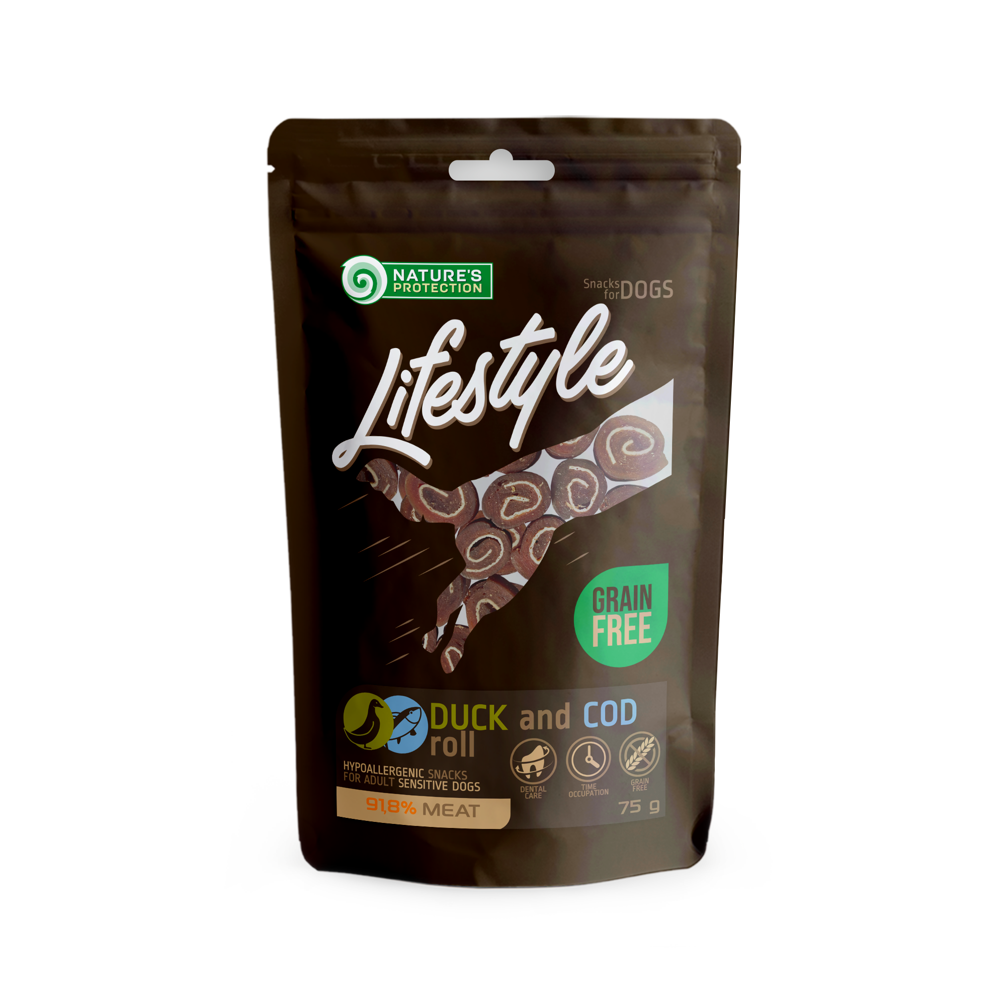NATURE'S PROTECTION LIFESTYLE snacks for dogs, duck and cod rolls 75 g