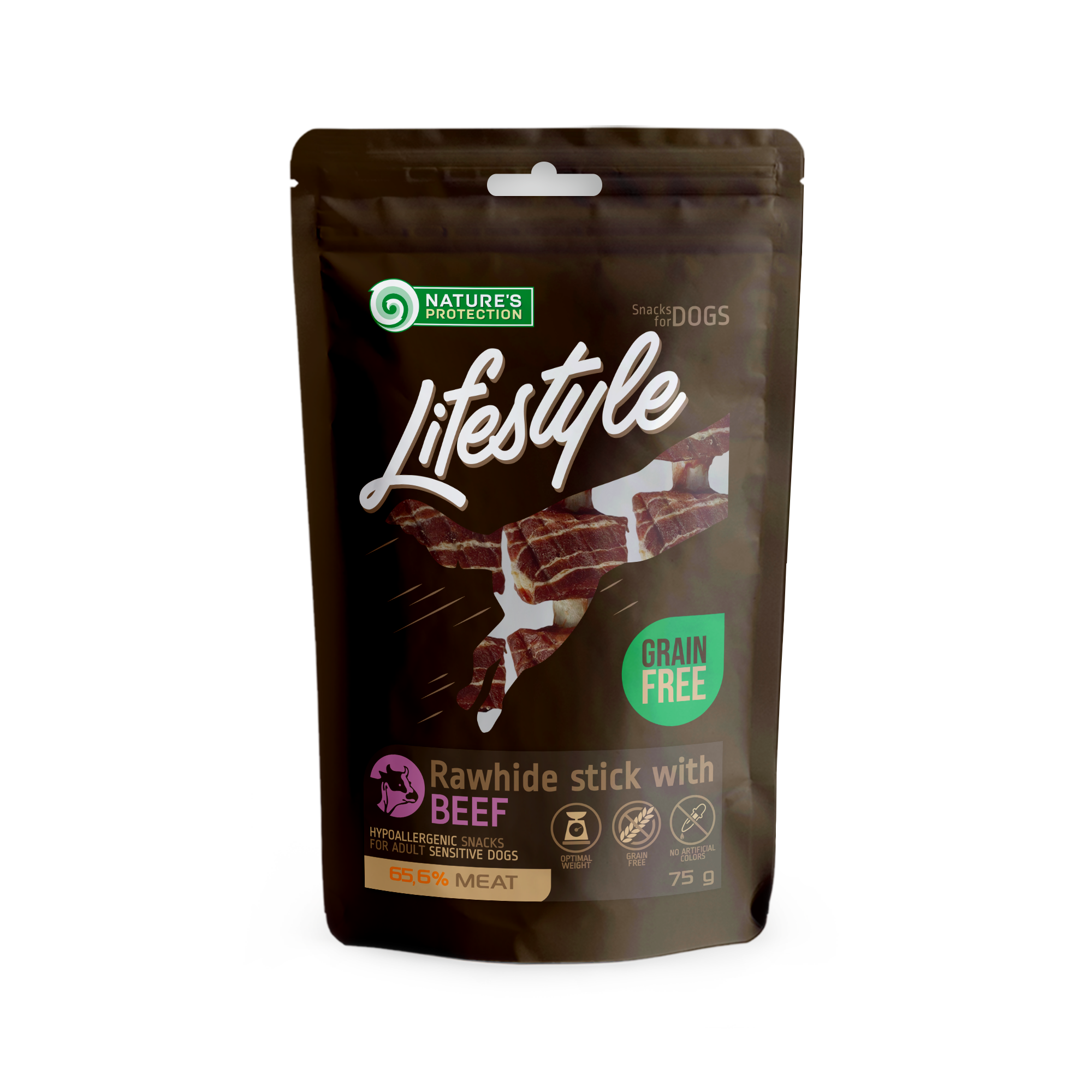 NATURE'S PROTECTION LIFESTYLE snacks for dogs, rawhide foaming sticks with beef 75 g