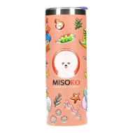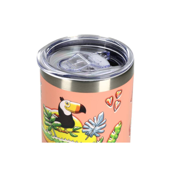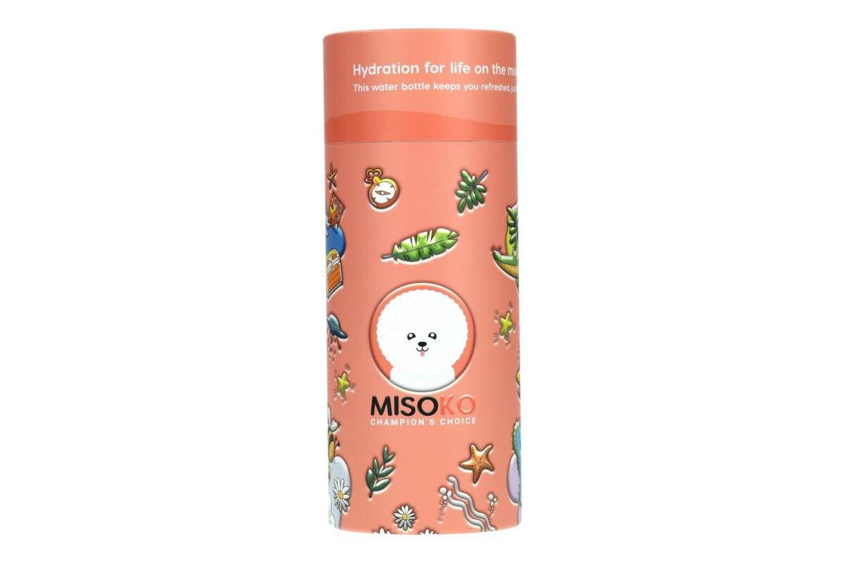 MISOKO stainless steel water bottle, pink color, with illustrations and lid 600 ml