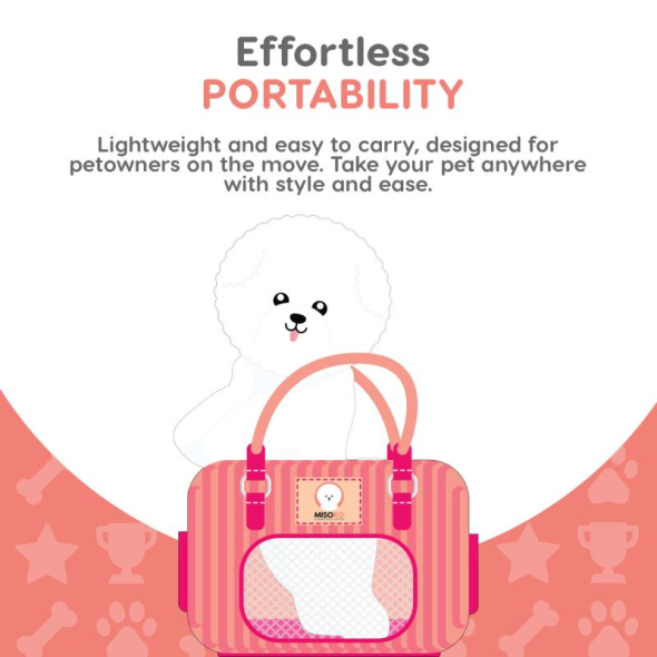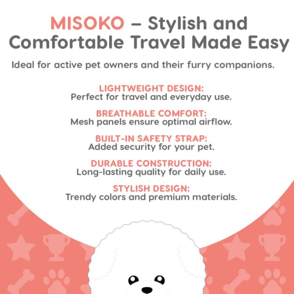 Stylish and comfortable MISOKO pet carrier, allowing your pet to travel with you – whether on a trip, to a show, or to the vet.