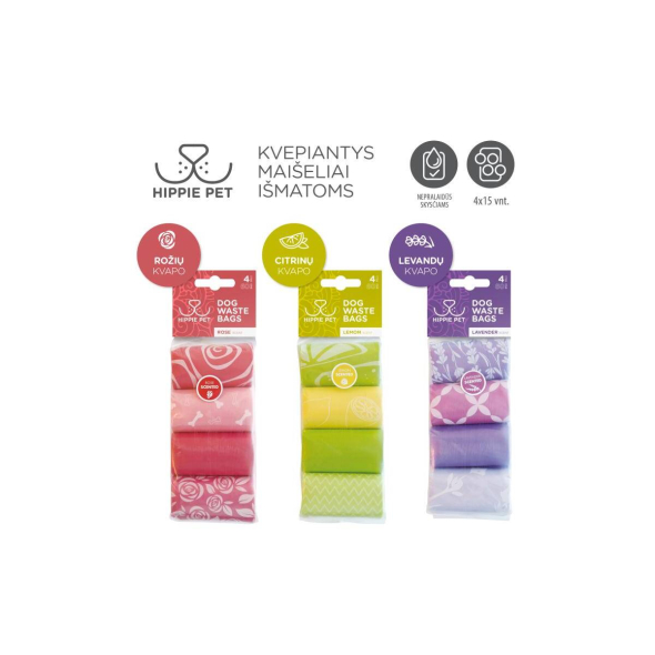 HIPPIE PET Waste bags for dogs, 4x15 pcs. lemon scent