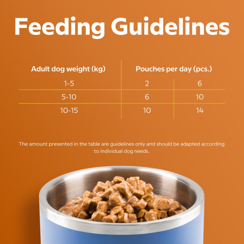 PIECES IN JUICY SAUCE. This food is designed to make your dog enjoy every bite. Chicken provides high-quality protein, which is necessary for muscle maintenance and energy. The sauce not only enhances the taste but also replenishes the body with fluids, which is especially important for dogs that drink less water.