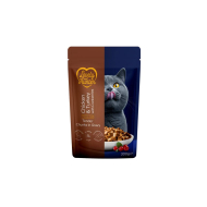 PIECES IN A JUICY SAUCE. Chicken and turkey are easily digestible, high-quality proteins that support muscle tone and energy. Cranberries are a natural ingredient that contributes to urinary tract health, helps maintain proper pH balance, and naturally reduces the growth of unwanted bacteria. The sauce helps maintain proper fluid levels in the body, which is especially important for cats that drink less water.