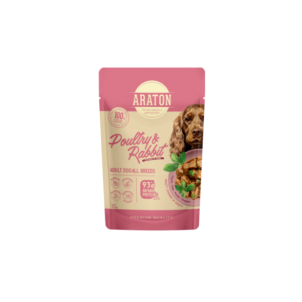 ARATON complete wet food with poultry and rabbit is a balanced choice for adult dogs. When it's not just about taste, but also about daily well-being, this food becomes a reliable solution. For adult dogs of all breeds, it provides essential nutrients, helps maintain healthy digestion, strong immunity and good skin and coat condition.