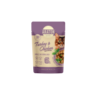 ARATON complete wet food with turkey and chicken is a balanced choice for a neutered cat, whose needs change, but the most important ones remain: good digestion, a healthy urinary system and maintaining muscle mass. When a cat is neutered, the body's metabolism slows down, but appetite often increases - so this food is designed to help maintain optimal body condition without stress or restrictions. 78% of ingredients of animal origin and 93% of all proteins are of animal origin - this promotes good absorption and provides the body with what it needs daily. Turkey is lean but nutritious, chicken is easily digestible. At the same time, they help maintain muscle tone and provide satiety without excess calories. The food is supplemented with natural additives - fiber, beet pulp (acting as a prebiotic), and traditional herbs: thyme, sage, parsley, oregano. These ingredients maintain digestive balance, stimulate appetite and contribute to natural resistance. Taurine is vital for the heart and vision. Vitamins D₃ and E and minerals (zinc, manganese, copper) are for the well-being of the immune system, skin and fur. Wet food is characterized not only by its nutritional value, but also by its pleasant texture - juicy pieces in sauce are liked even by picky cats. Without artificial flavors, colors or flavor enhancers - just a clear and clean formula for a sterilized cat. Suitable for daily feeding, as the main food or combined with dry food. ARATON recipes are developed together with animal nutrition experts, based on the real needs of pets. Made in Lithuania - in compliance with high quality standards. ARATON is a KIKA family product, trusted by many owners around the world. So that daily feeding is not only pleasant, but also useful.