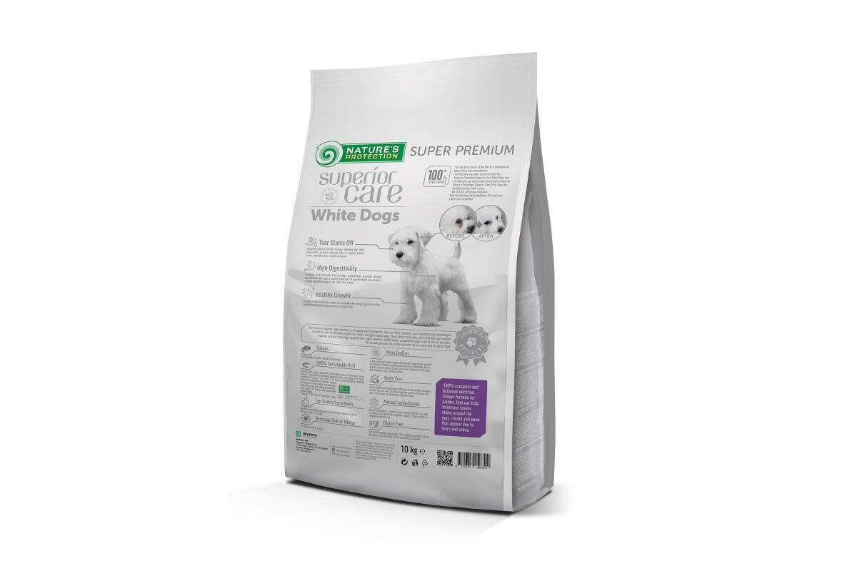 NATURE'S PROTECTION SUPERIOR CARE dry grain free food for junior dogs of all breeds with white coat, with salmon 10 kg